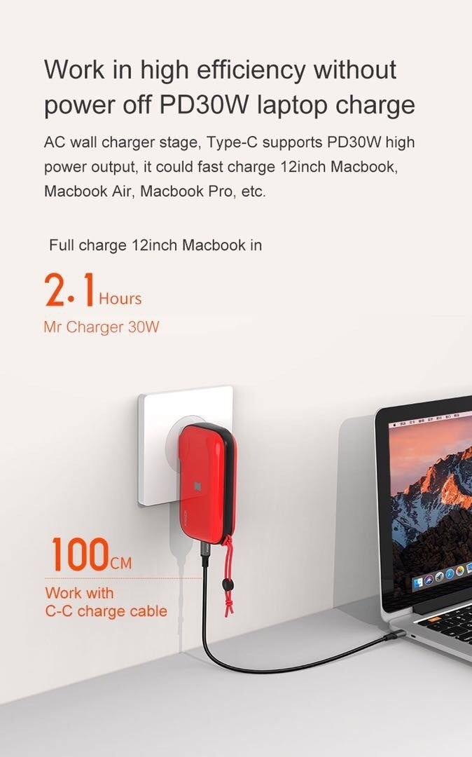 ACコンセントに直接接続している時はPD30Wに対応します。チャージ時間は機種にもよりますがMacBook, MacBook Air, MacBook Proでさえチャージ可能です。