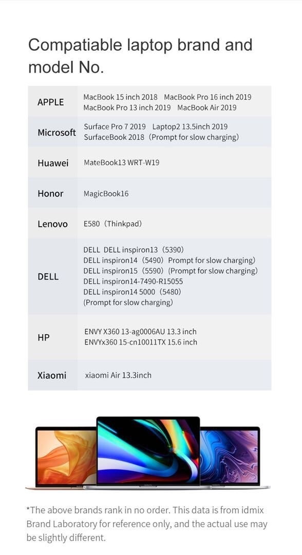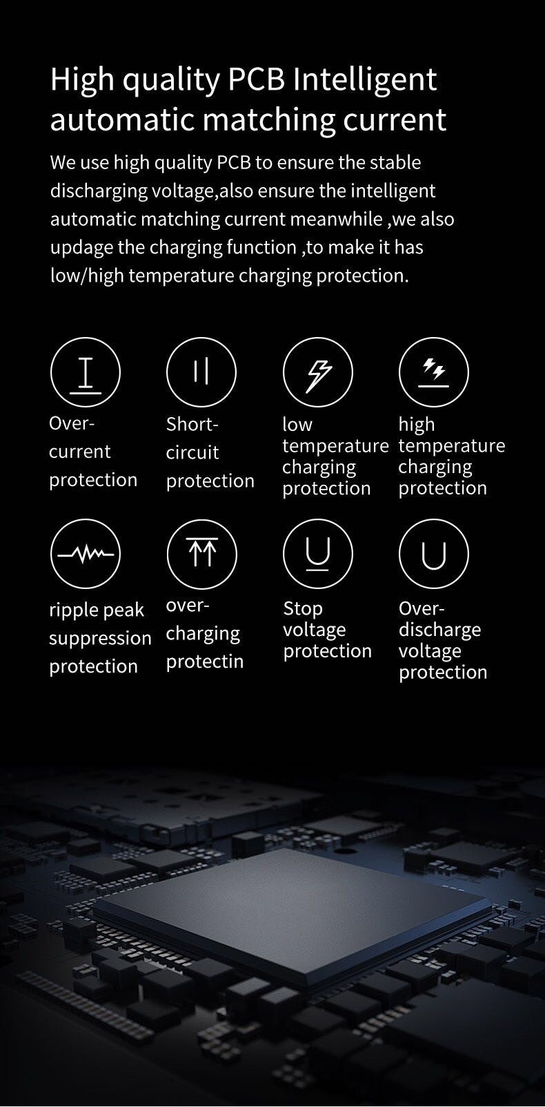 急速充電器だからと言って危険な充電器は持ち歩きたくありません。また、他のデバイスを傷つけたり故障や支障をきたすようなことは、あってはならないことです。下記の表をご覧下さい、インテリジェントセーフティ機能を搭載していますので他のデバイスへの不安もなく安心してお使いいただけます。