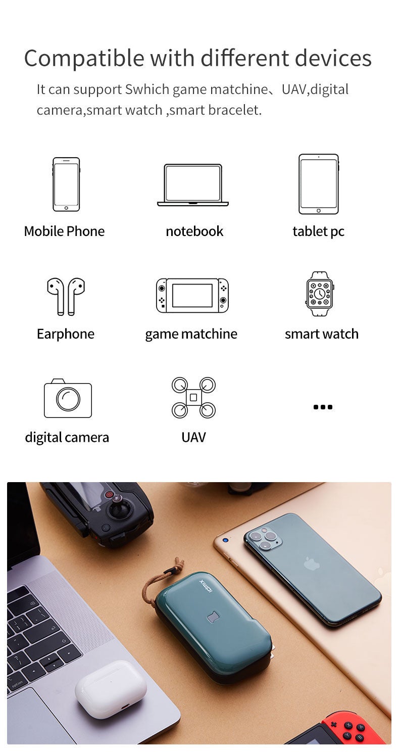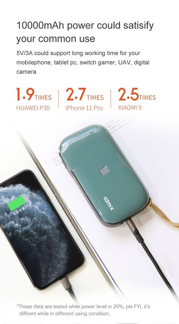 どれだけ多くのデバイスを同時に充電できたとしてもモバイルバッテリーの電池がすぐになくなってしまうようでは安心なんて持ち歩けません。こんなに小さくても10000mAhのバッテリーを搭載しております。電力消費の激しい漢の遊び、ドローンもゲーム機器もお任せください。