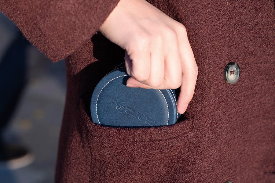持ち運びやすいコンパクトサイズの専用のレザーケースが付属。大切なイヤホンを守るよう配慮したつくりになっています。