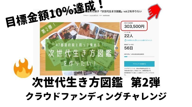 クラウドファンディングスタートから、早3日が経ちました!すでに、たくさんの方から、支援をいただいておりまして、合計支援額:303,500 / 3,000,000円支援者数:22人残り日数:55日(※12/22日23時59分現在)という状況で、目標金額の10%に到達しました!支援・応援してくださっている皆様、本当にありがとうございます。いくつか、支援してくださっている方のコメントをご紹介します!いつも、僕たちの活動を応援してくれている人を筆頭に、勢いで支援してくださった方たちまで!支援してくださることはもちろんですが、こうしたメッセージを見ると、ほんとチャレンジしてよかったと思えます。ありがとうございます。さて、残りは55日となりました。all-or-nothingのチャレンジですので、期間内に目標金額を達成できないと、1円も支援されず、企画は実行できないという仕組みで挑戦しています。支援は、引換券を買うだけではなく、SNSで発信していただくことや口コミで教えてもらうことなど、やり方は様々です!また、支援は早く集まれば集まるほど、さらに支援者が集まりやすい傾向にあります。もしすでに支援を決めておられる方がおられましたら、ぜひ、お早めの支援をお願いします。(クレジット決済の場合は、達成後にしか決済されません。)ひとまず、近況報告でした!お読みいただきありがとうございます。引き続き、達成まで、一気に走り続けます!