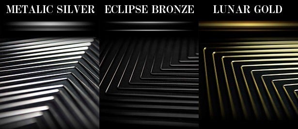 メタリックシルバー、エクリプスブロンズ、ルナーゴールドの3つそれぞれが魅惑的な反射と多様な錯視を演出します。