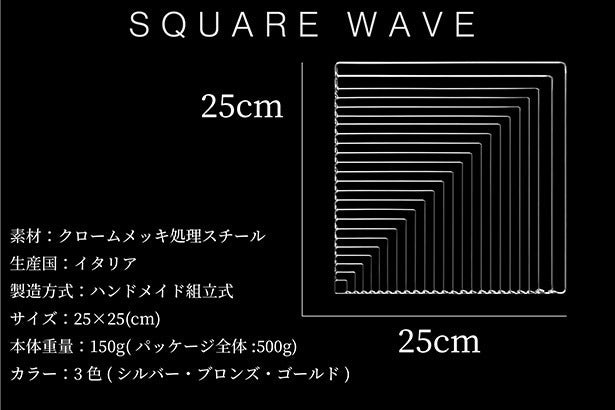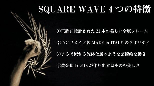 ハンドメイドで一つひとつの作品に心を込めて作製されたSQUARE WAVEにはイタリアの伝統と芸術性の高さが表現されています。