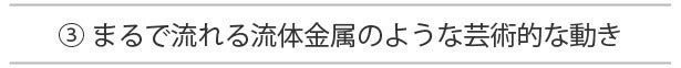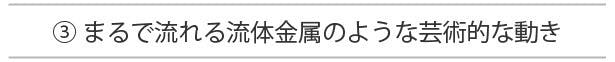 まるで液体金属のような連続した流動的な美しい動きを表現します。