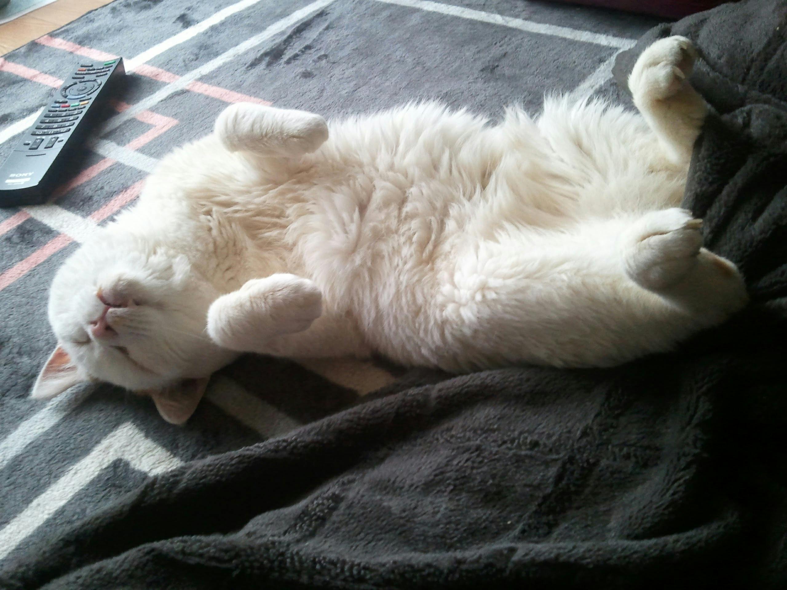 〈すでに虹の橋を渡っている”しらたま”。過酷な外の生活から最後の1年ほどは自宅でぬくぬく〉
