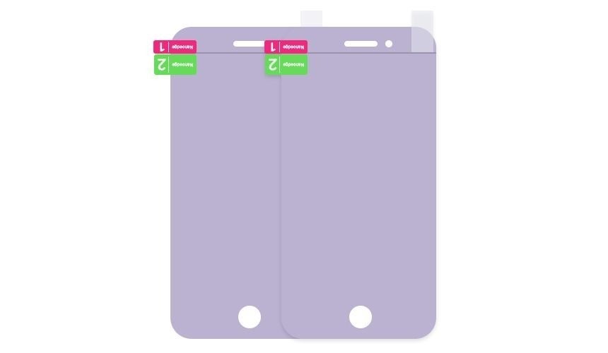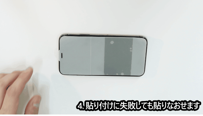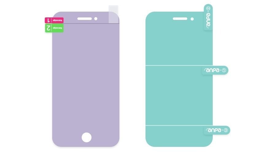 通常、1段、上下2段のカット方式になっている製品の場合、上部の保護ペーパーを取り除いてすぐに画面に貼り付けます。この場合、貼り付けに失敗したりすればフィルムは廃棄するしかないといった残念な結果となります。ANPAフィルムは、中央部の保護ペーパーをまず取り除き、その後に上下の位置合わせをしてから貼り付けるという段取りですので失敗のリスクが非常に小さいのです!(位置合わせに失敗したまま貼り付けてしまった場合でも、最高級ウレタンの優れた粘着力が売りですので、あわてず、剝がして再度貼り付けが可能です。)