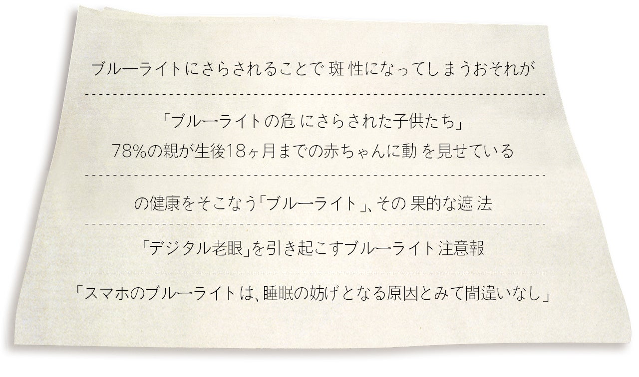 スマホの与える「楽しさ」と「便利さ」のせいで、現代人は朝起きてから夜眠るまで片時もスマホを手放しません。いつの間にか日常生活になくてはならないものとして定着してしまったスマホ。でも、スマホ画面から出る有害な「ブルーライト」のことを皆さまはご存知でしょうか。