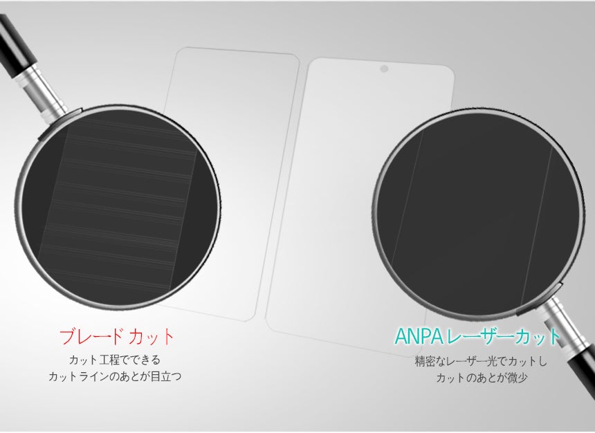 一般のブレードカット製品とは異なり、ANPAブルーライトガードはレーザーカットの手法で製造。このため製品の微細なカット跡はきわめすわずかとなります。