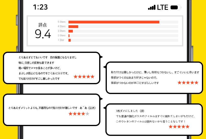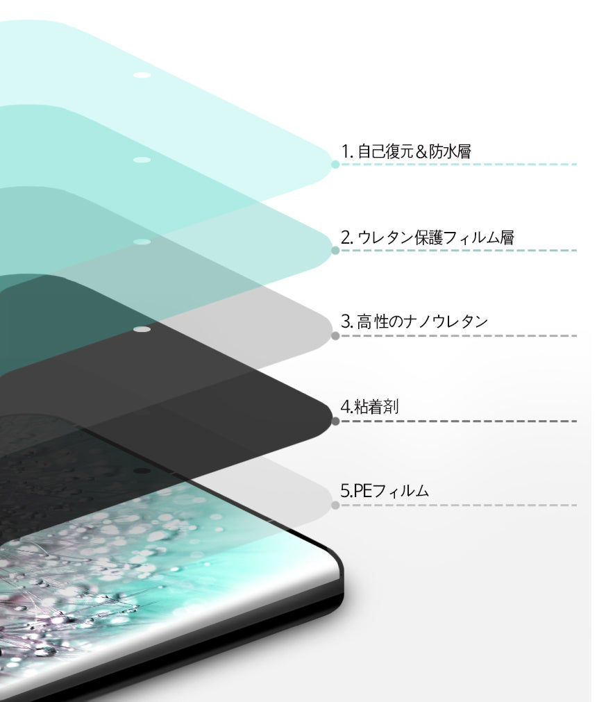 - 3層構造のフィルムが完全に一体化、外部からのひっかき傷、衝撃、湿気などからフィルムとスマホ本体を保護してくれます。
