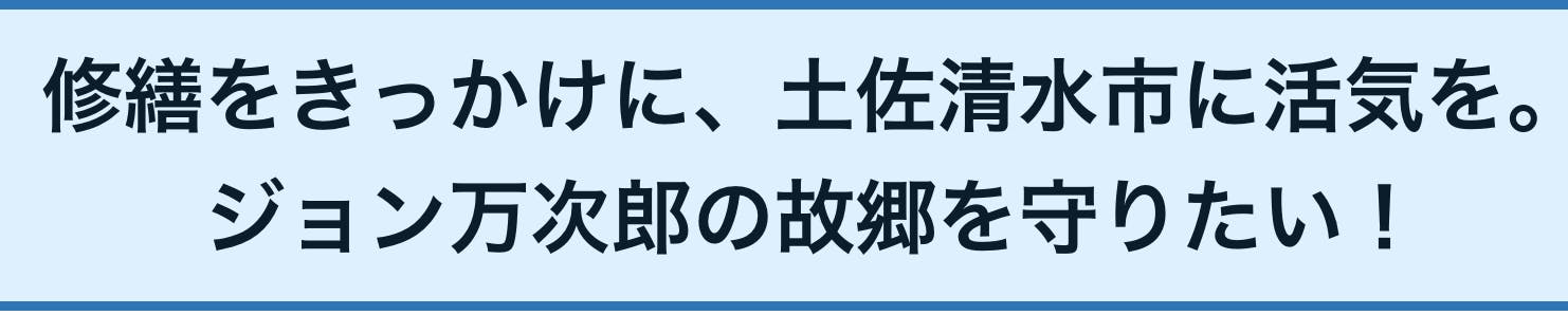 こうした現状を知り、ジョン万次郎のシンボルでもあるこの生家をなんとか修繕できないかと思い、今回のクラウドファンディングを立ち上げることにしました。