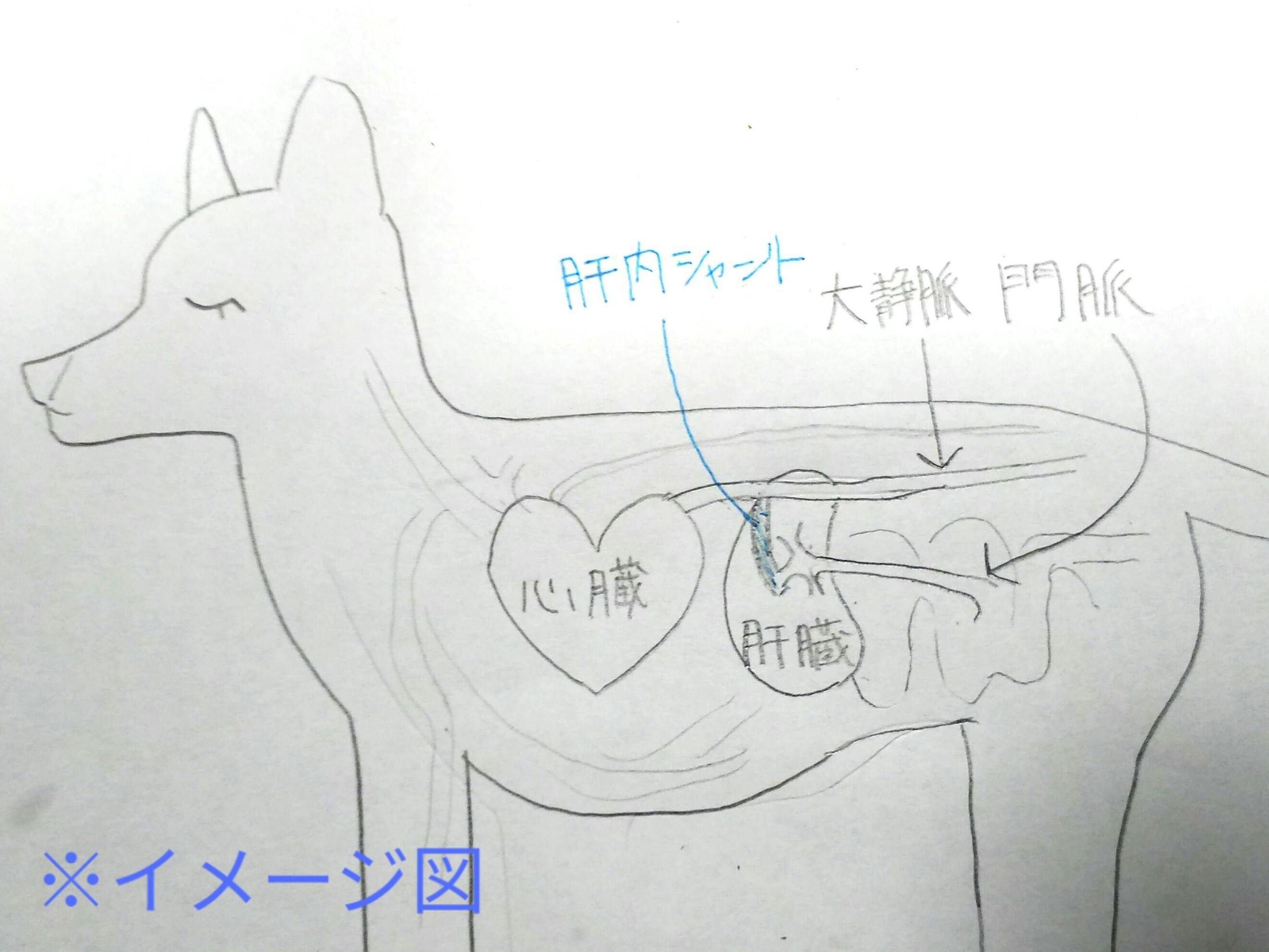 本来、「門脈」という血管を通って肝臓に入るはずの、多くの栄養素・肝臓で解毒される毒素が含まれた血液。グレイはこの門脈と全身を循環する大静脈が繋がっていて(シャント血管)、栄養を取り込むことや、解毒することが十分にできない体です。肝臓の発育が悪く、普通の1/3程度の大きさしかありません。毒素が循環することで、肝性脳症という神経症状が起こりやすくなります。放置した場合、あと2年ほどしか生きられないということです。