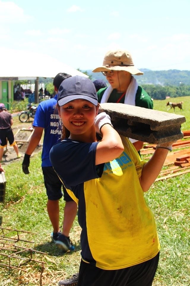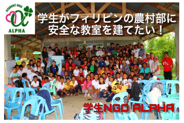 学生NGO ALPHAは2009年に団体が設立され、今年で10周年を迎えました。私たちは大学の長期休みを利用し、春と夏の年に2回、2週間ずつ、学生が実際にフィリピンに渡航しています。フィリピンでは、現地のNGO LOOB(ローブ)という団体と協力をして、学生自らの手で行う小学校の建設活動と、小学生に向けた自分たちの手作り授業を行っています。この建設活動と小学生にむけたオリジナルの授業がALPHAの活動の2本柱となっています。小学校を建設することにより、現地の不足分であるマイナスを埋め、手作りの授業を行うことによって、子どもたちが新たなことに興味を持つきっかけをつくり、プラスを生みだす、という理念の下で活動を行っています。