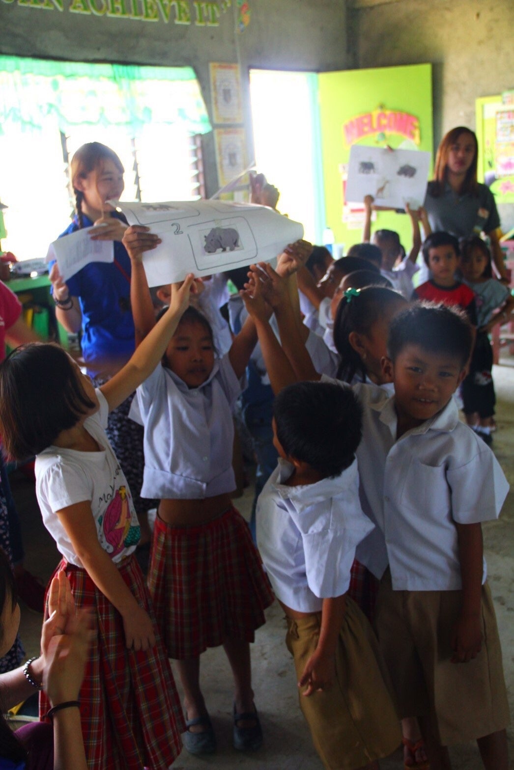 この目標を達成するために、私たちは春と夏の年に2回、フィリピンで小学校の教室建設やオリジナルのワークショップ授業を自分たちの手で行っております。日本国内では、週に1回のミーティングでフィリピンでの活動の準備をしているほか、大学の学園祭での写真展や地域の行事への参加でフィリピンの不十分な教育環境の現状を知ってもらうための活動をしています。また、これらの活動を通してフィリピンの文化や生活に興味を持ってもらうことも目指しています。