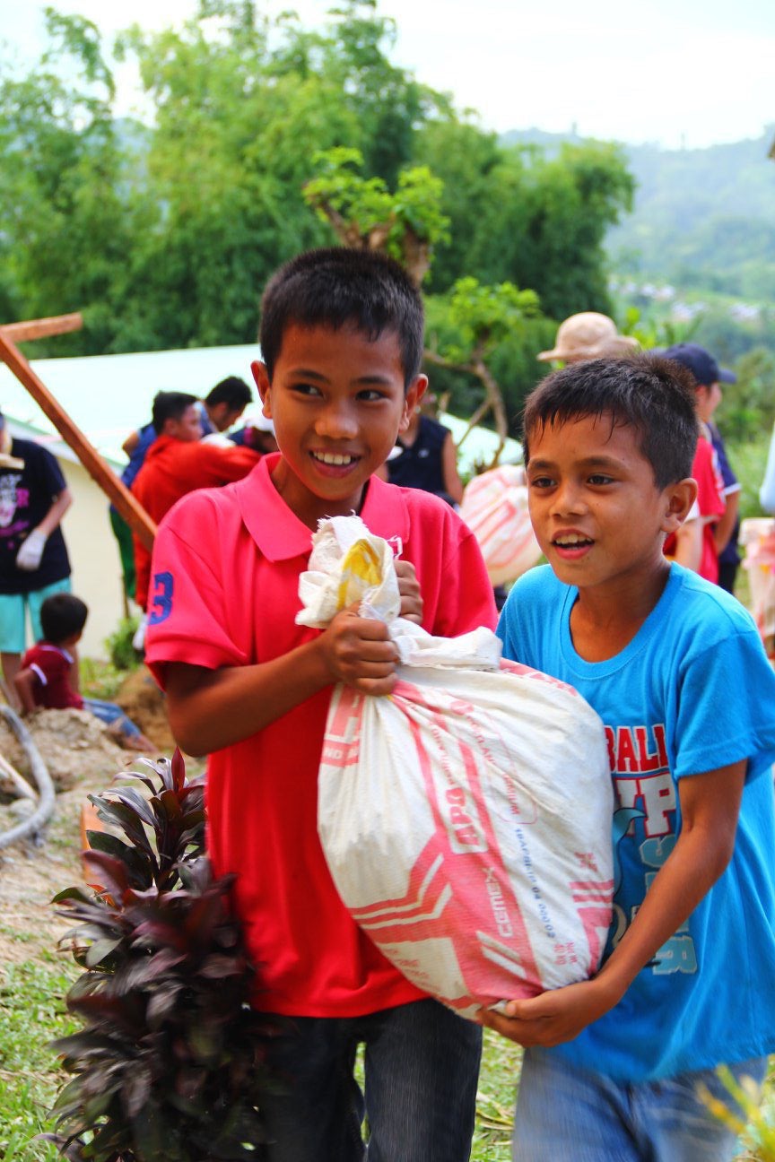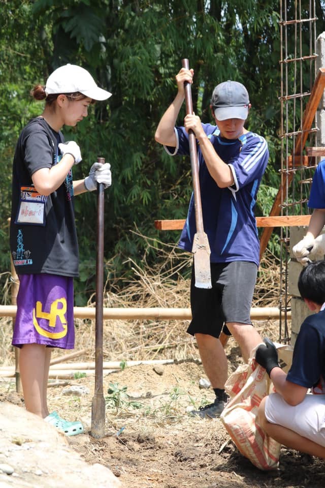 村のお父さんお母さんが参加してくれたり、休み時間になると子供たちまで一緒に作業をしてくれます。