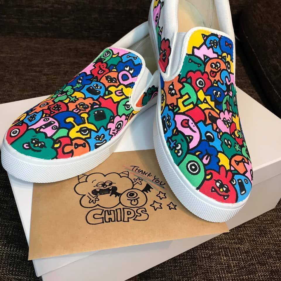 10,000円 お礼のメッセージ / CHIPS今回限定デザイン 手描きスリッポン