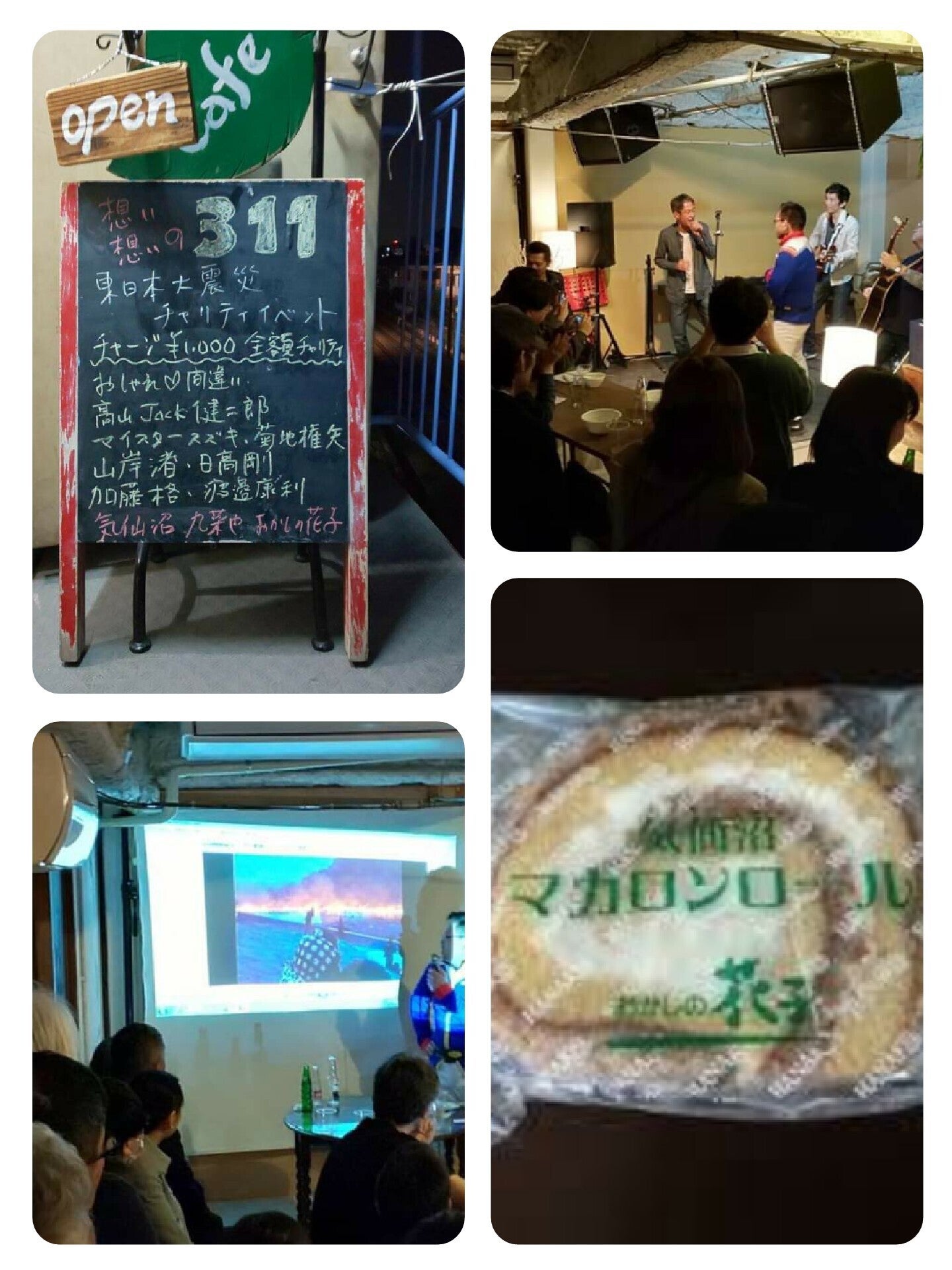 時はさかのぼり9ヶ月と25日前、私は気仙沼商工会議所青年部に所属していて、そこのお世話になったOBから東京の豪徳寺にて震災の語り部とうちのマカロンロールと酒ケーキを売りに招待されました。 OBの方から「震災を体験した人じゃないとわからない部分がある、語り部と花子の商品売りに来ないか?」と、私は「行きます、マカロンロールと酒ケーキは先にイベント場所に宅配でもよろしいでしょうか?」と応え、OBの方は「OK!、商品はうちで管理しとくよ。」私は3月11日夜行バスで向かい、その夜に豪徳寺にて「思い思い3.11チャリティーイベント」に参加しました。OBによる美味しい手料理とチャリティーコンサートの人達の気仙沼を思う歌の数々にそして募金は気仙沼商工会議所に寄付と「本当にありがたい…」と心から頭を下げました。後半、私の番になり自分の震災の体験を語りました、「横揺れの激しい地震、倒れてくるどら焼きが入った箱、体験してわかった津波が来る20~30分までの行動と選択、余震の数々、復興してる最中の気仙沼の人口減少と商売人の課題」いうだけ言いました。 真剣に聴いてくれた姿勢のせいか私の語り部効果もあったせいかマカロンロールと酒ケーキは跳ぶように後半売れましてめでたく完売し、OBから「今日はよく来てくれた、ありがとな!」と互いに握手して「また来ます」と私はその場を後にした。 商売人としてこのイベントを感じたことはお菓子にしろなんにしろ知ってもらうことに販路を開拓しないといけない……気仙沼の土産菓子 つづく広告 ふかひれマンボの応援よろしくお願いします!!