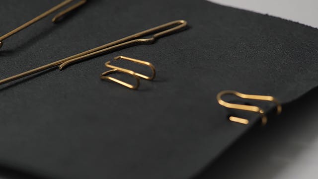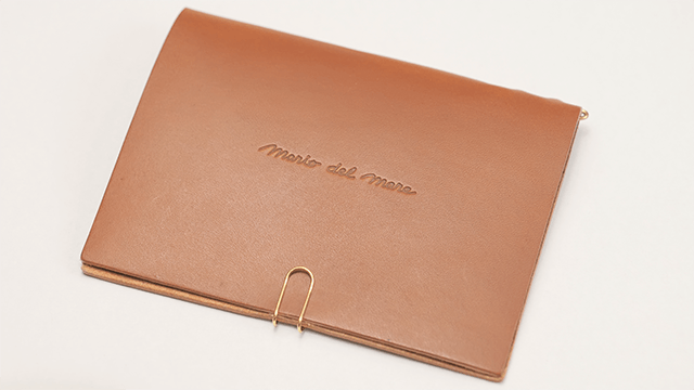今回A4メモウォレットの為に新たにデザインし、国内のバネ工場の手仕事で作っています。仕上げは本金仕上げ。