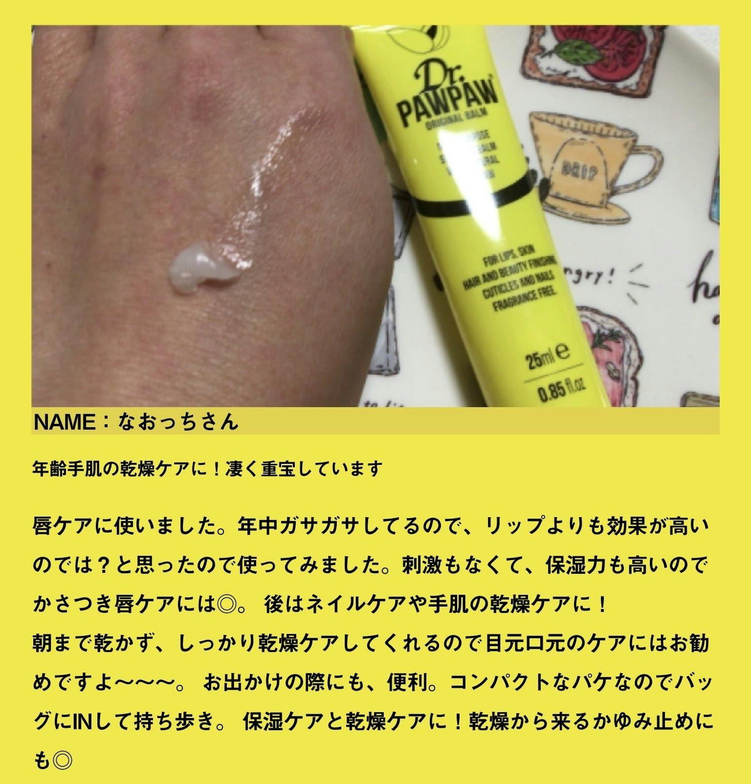 今回、英国のDr.PAWPAW社と縁があり、ドクターポーポーマルチバームを取り扱うことになりました。昨年よりテスト販売を行い、非常に好評をいただきましたので、今シーズンから本格的に販売することにいたしました。普段は、評価の厳しい弊社の女子社員やモニター様からも使い勝手の良さ、保湿力の高さなど、高評価を得ておりますので、この機会に、一人でも多くの方に便利で効果的なドクターポーポーを使っていただきたいと考えています。