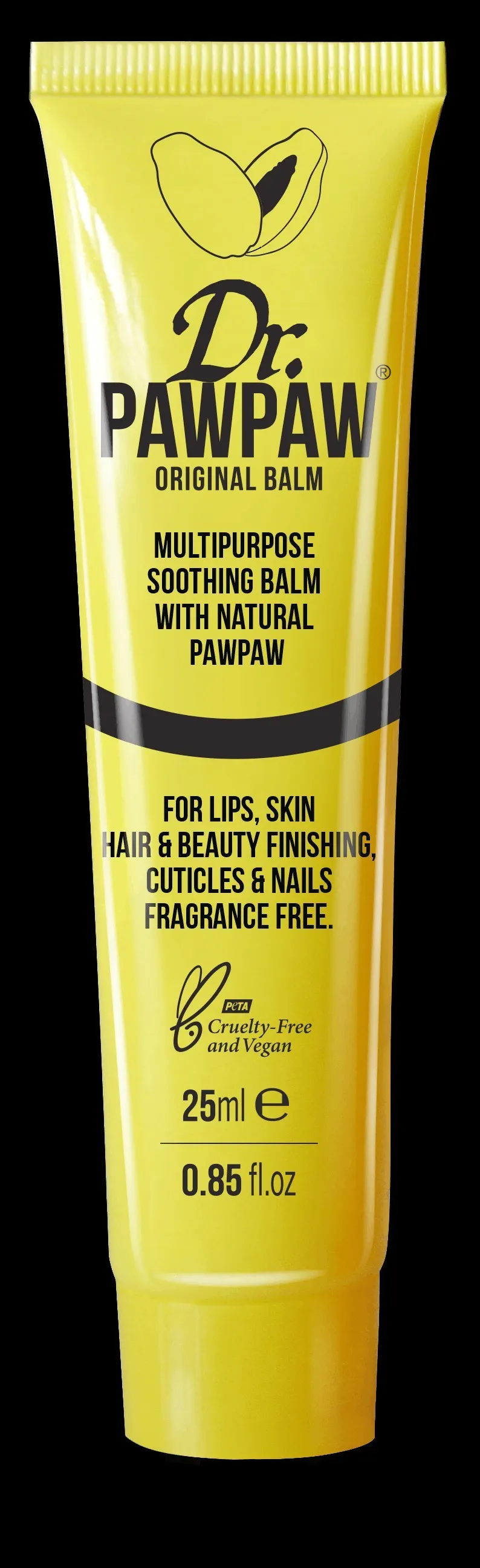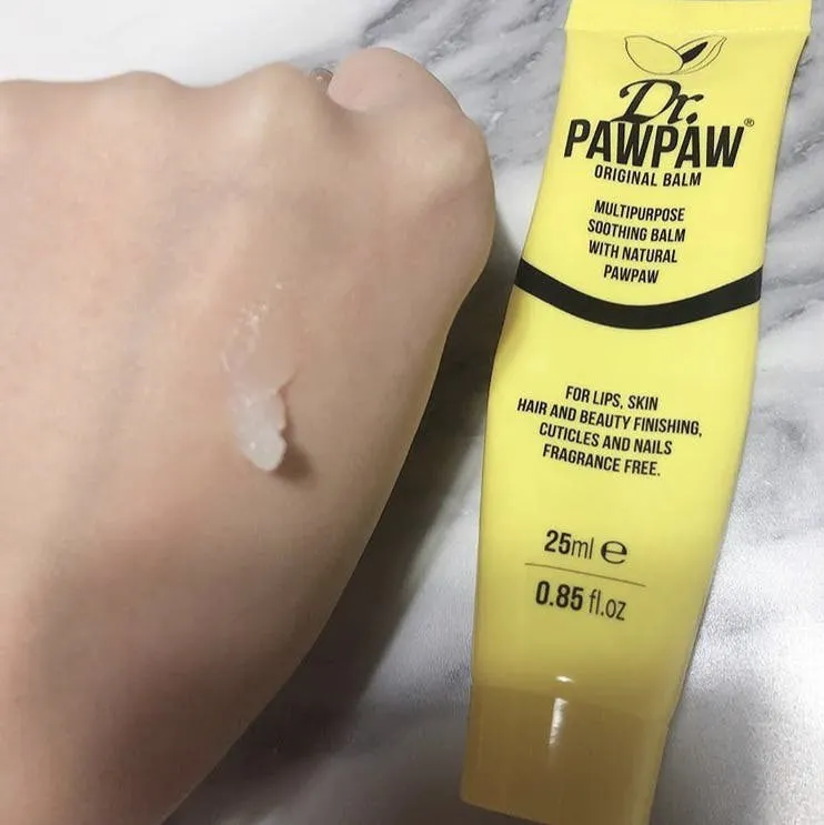 「ドクターポーポー」のフレグランスフリーバームです。乾燥を緩和し、唇、爪、手、かかと、肘等を保湿します。化粧下地としても、髪の毛の最後の仕上げや眉を整えるときにも。