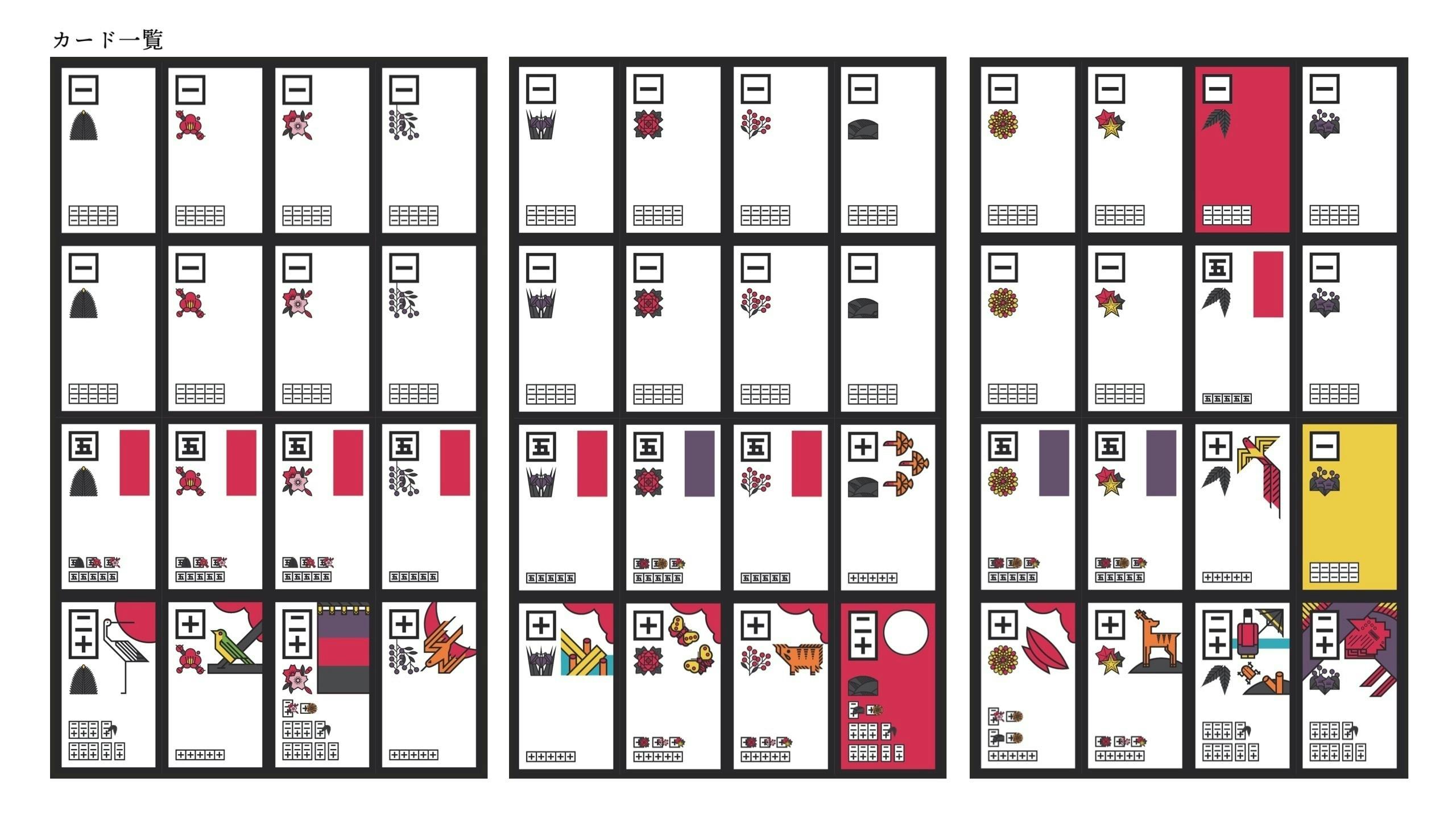 といっても、描くモチーフを変える訳ではなく、できるだけ元の絵の魅力を保ちながらレイアウトを変えるような作業です。むしろ、札ごとの点数や役の構成など、覚えるべき情報を全てカードの中に表記し、カードデッキ単体で遊べる状態にすることが最大の目標でした。
