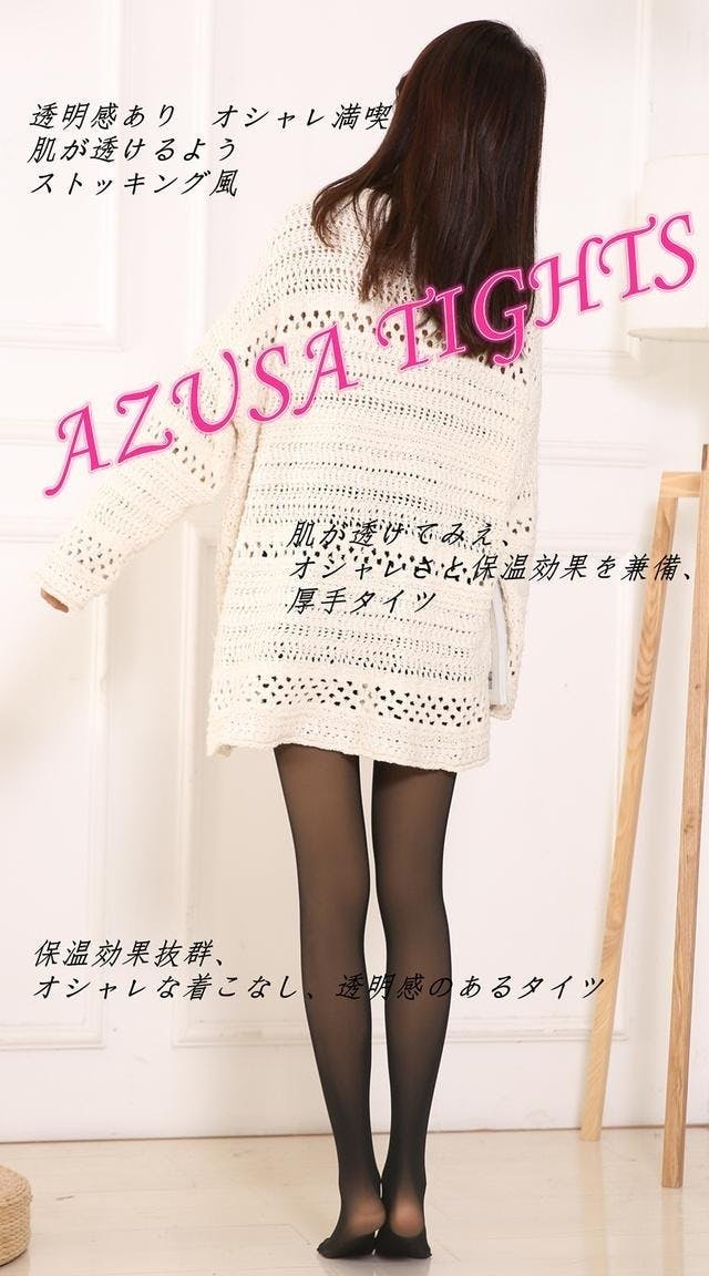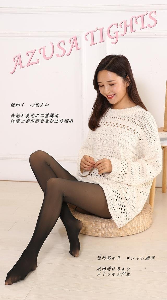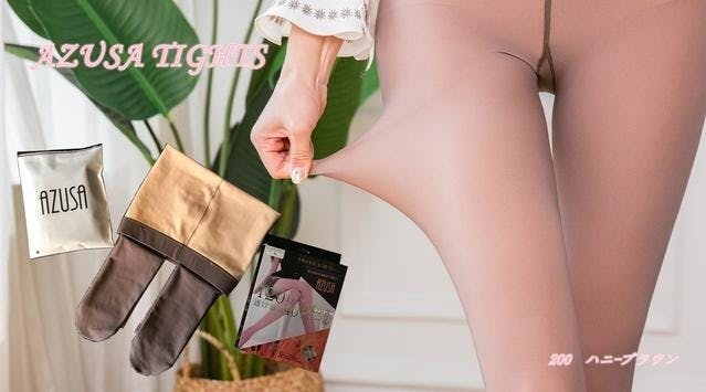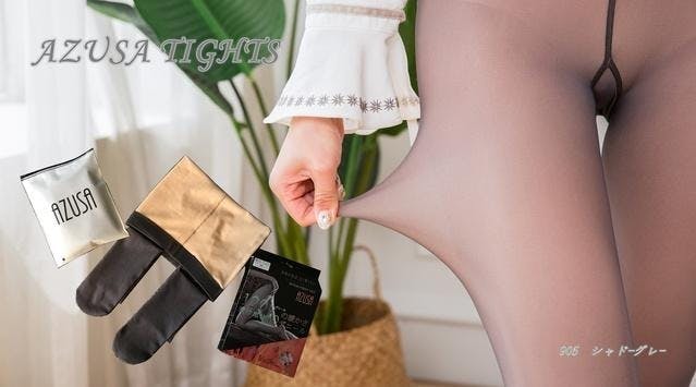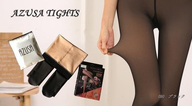アズサタイツは、冬場でも膝関節を寒さから守ることができる裏起毛と、製品の内側を人肌に見せる製法でまるでストッキングのような透け感をもつタイツです。