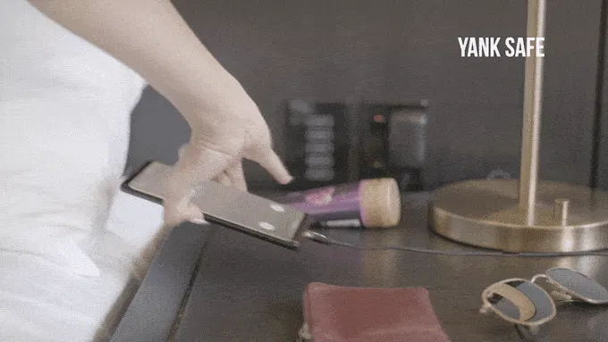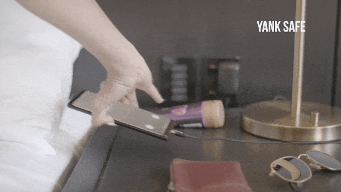 落下や日常的な使用用途では、コネクターが外れることはありませんが、必要に応じて簡単に指で外していただけます。また、ケースに入れたスマホやGoProなどのコネクターと充電部の干渉が平らでない場合も想定しておまけに取り外し器具も同封しています。