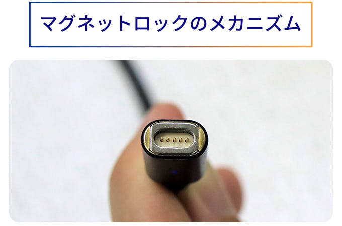 見落としがちですがマグネットケーブルでチェックするポイントは、ホコリや汚れが接続部分に入るのを防いでくれることです。接続部分にチップをさしたままにしておくので、普通のケーブルを毎日出し入れするよりも、接続部分の寿命を延ばします。
