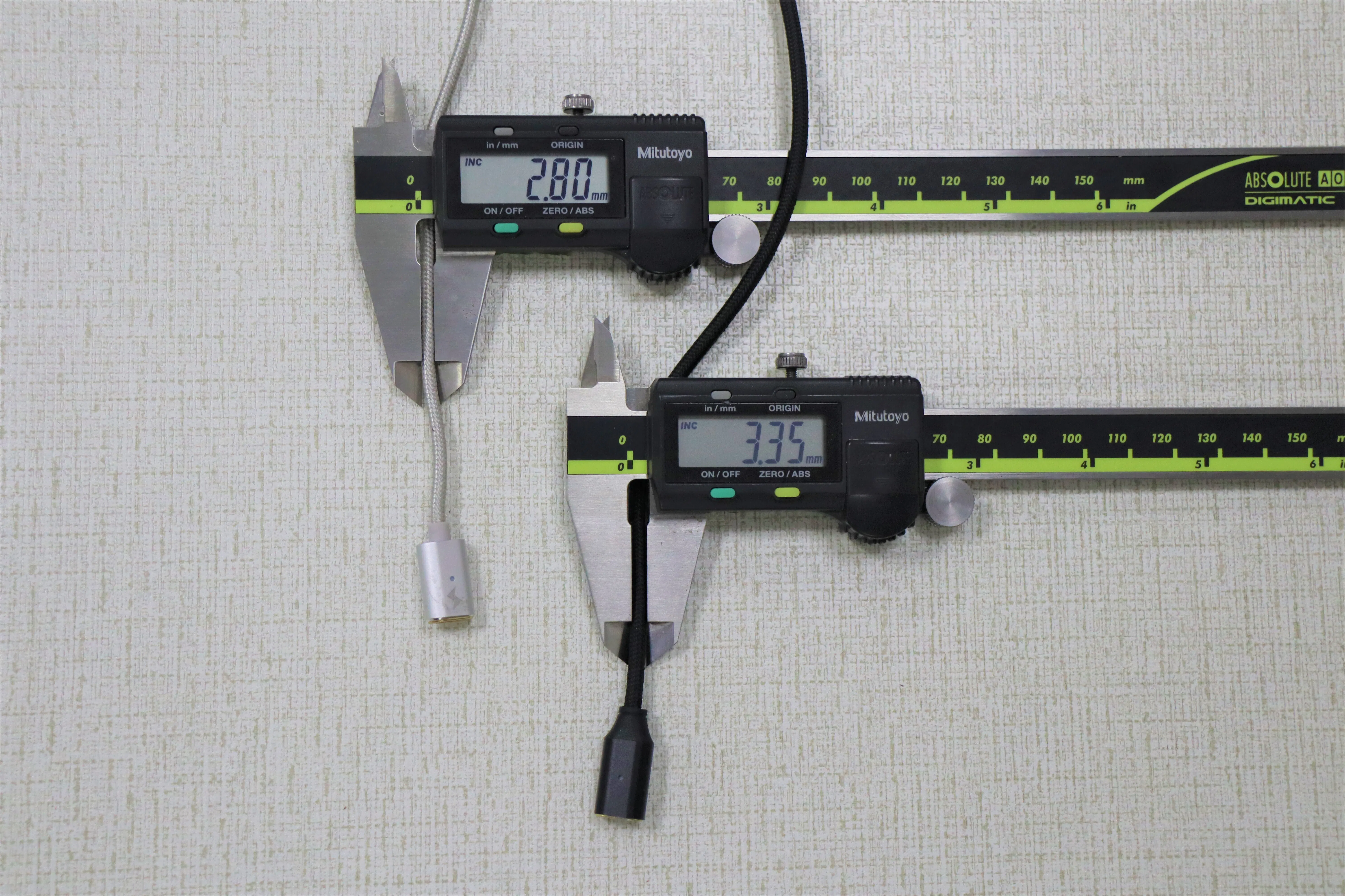 他のマグネットケーブルと比べてもわかるように、私たちの製品では、チップが180度逆を向いていても、正しく接続されます。これは、強力なネオジウムマグネットを使用し、電極を正しく配置したためです。また、マグネットコネクターのデザイン(外向きで、凹形)も理由の一つです。
