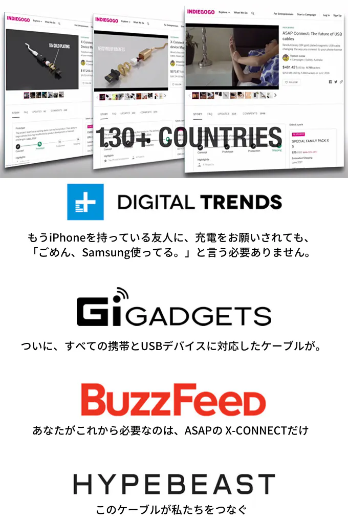 -ベンジャミン:とても満足しています。 indiegogoキャンペーン以降のasapコネクタの進化は素晴らしい! 互換性にも非常に優れた製品です!!