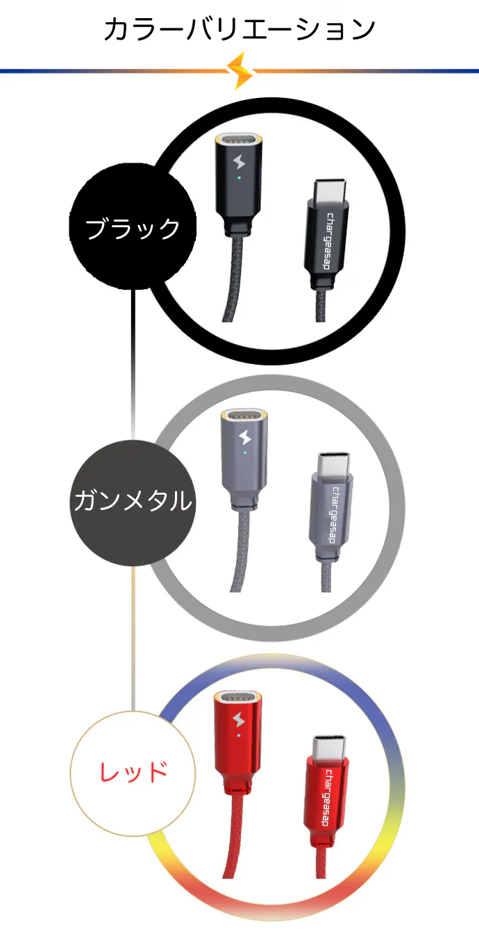 最先端 様々なデバイスに対応 USB-C端子のマグネット式USBケーブル