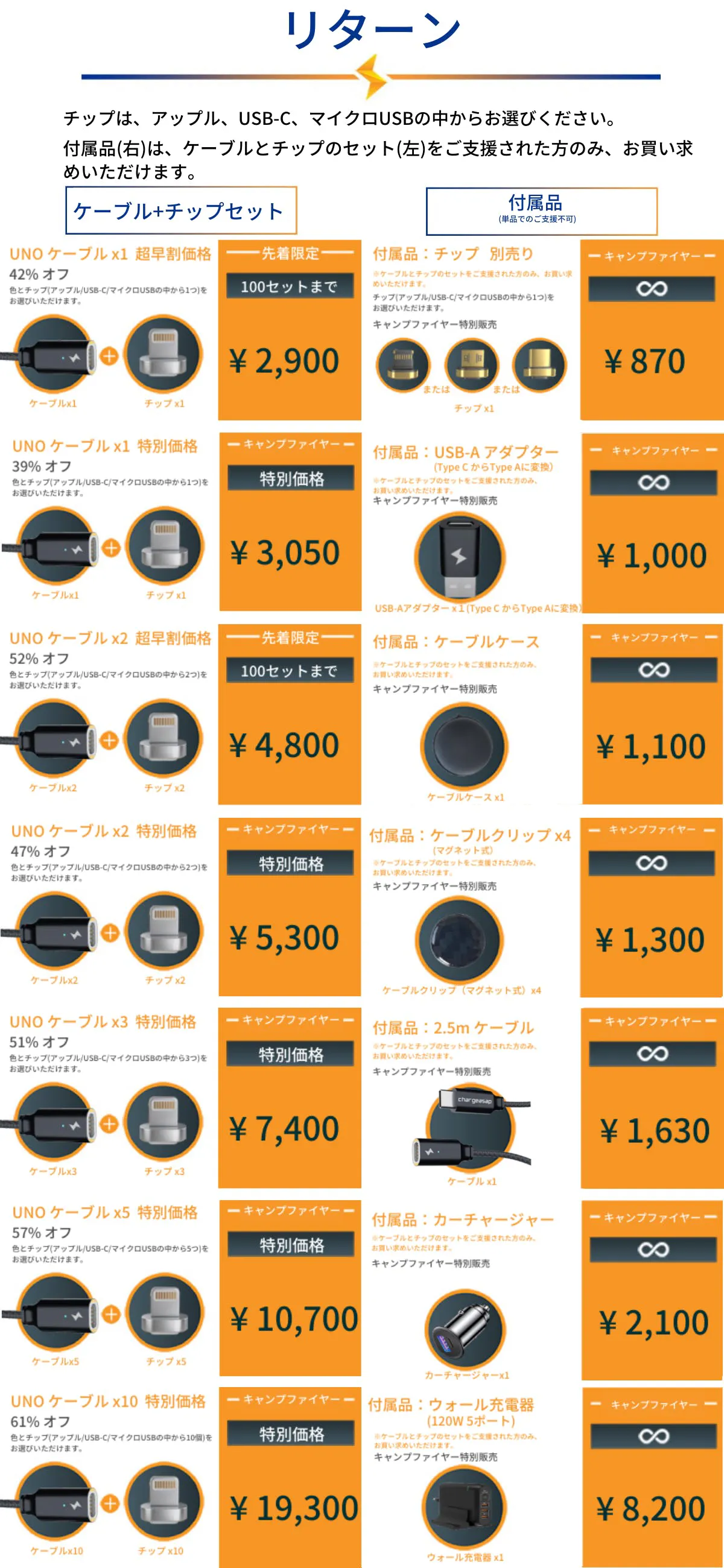 *付属品はケーブル+チップセットをご支援して頂かないとお買い求め頂けませんのでご了承ください。