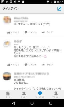 1つの投稿に、同じ禁煙仲間の平均約30人の「いいね!」の励ましが届き、とても力強い連帯感で禁煙を継続し成功することが出来るアプリです。
