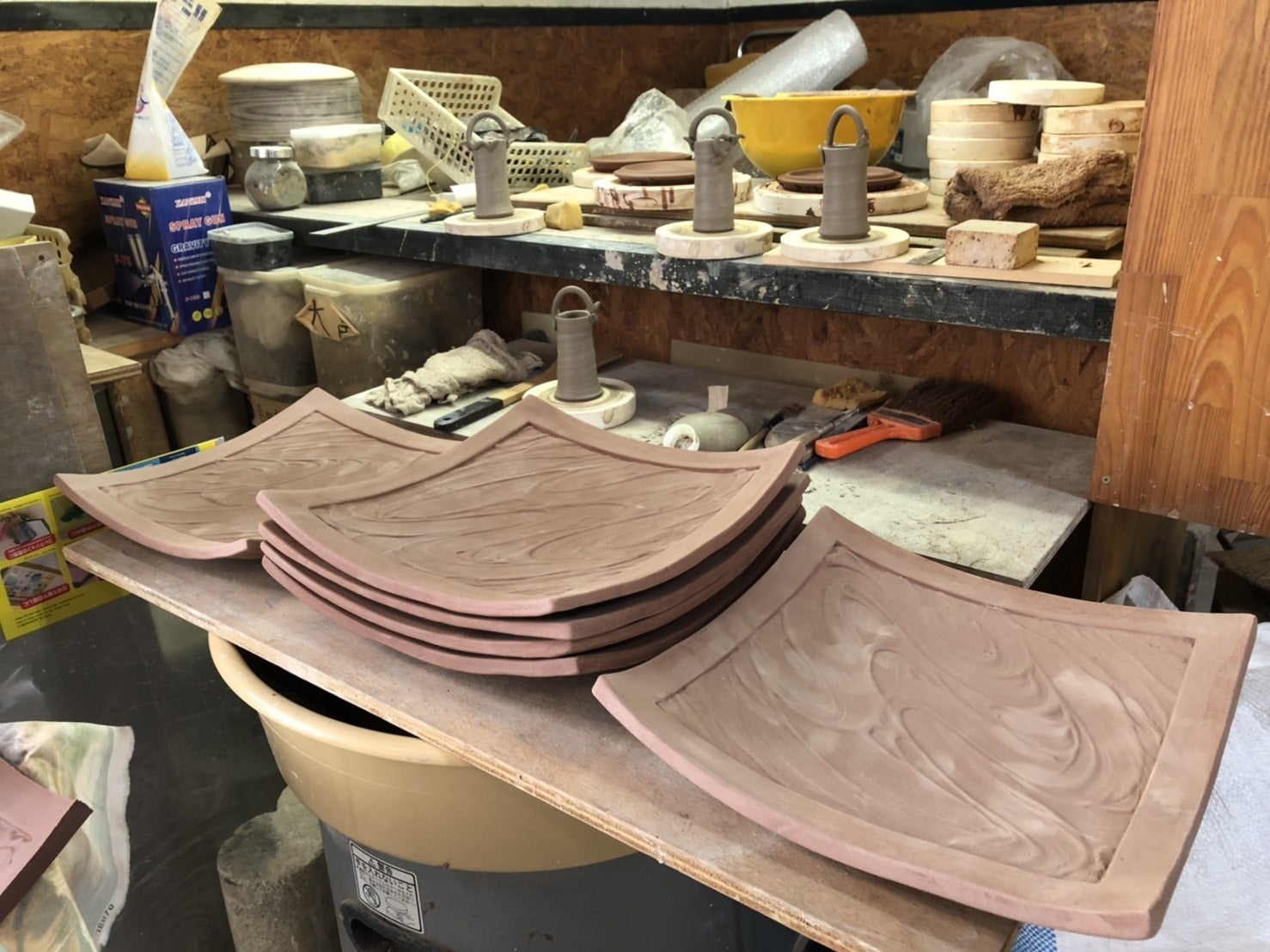 リターンのオリジナルカップとカッティングボードの試作品です!想いに賛同してくださる地元の陶芸の先生と一緒にオリジナル耐熱プレートを作ります