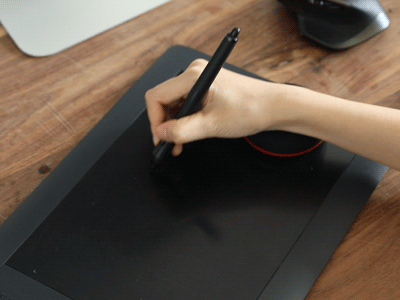 固定式のリストレストでは手首の位置も固定されてしまい左右の移動しかできませんでしたが、この円形リストレストではどの方向にでも手首の移動が可能。タッチパッド上での作画なども自由に。