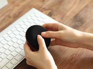 そこで今回ご紹介するのは、人体工学に基づく設計で手首を自然な高さに支え、疲労・痛みを予防するリストレスト(=手首置き)ですが、従来のキーボード手前に置いたりマウスパッドに付属している固定式とはは全く違う、コロっとした円形デザイン。