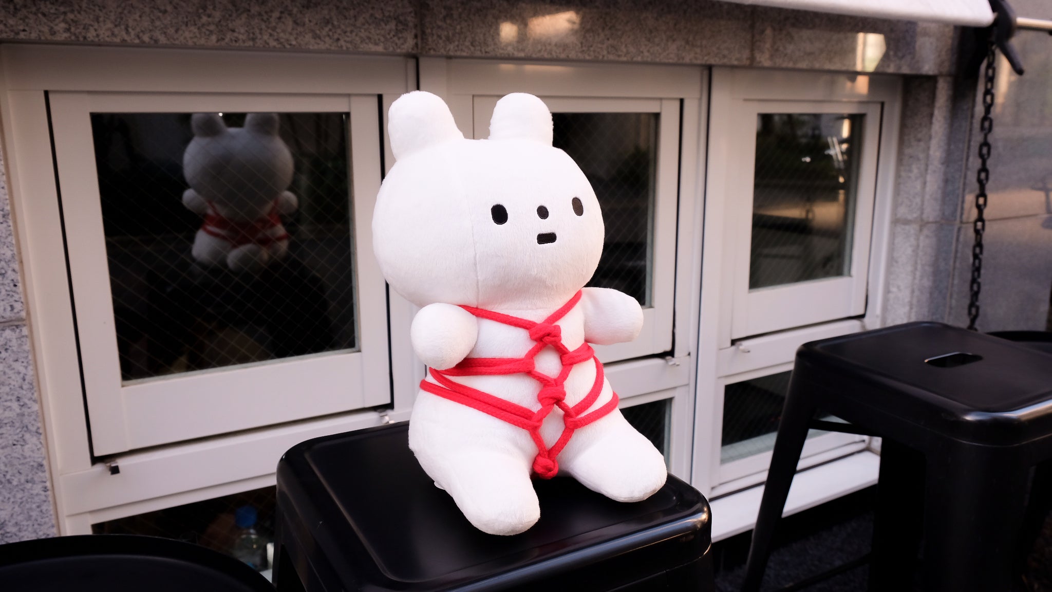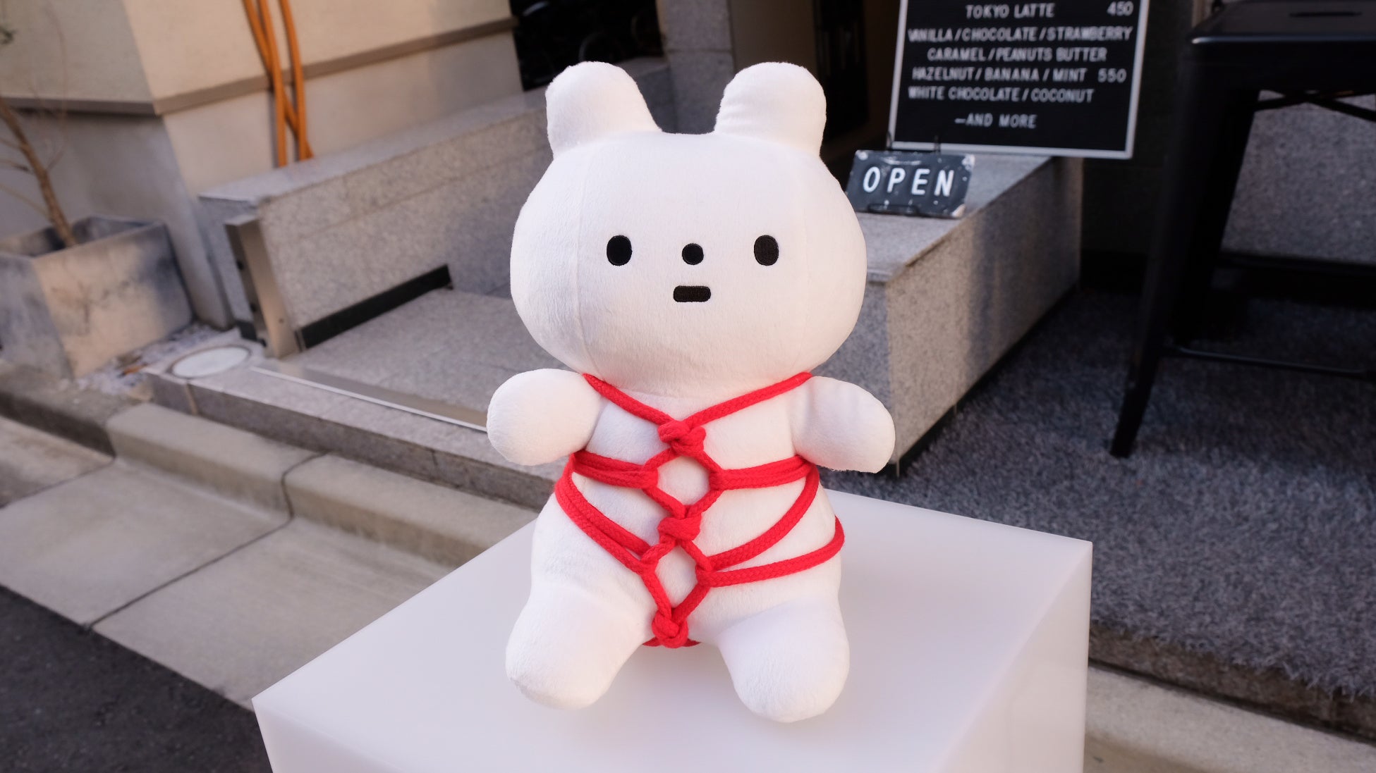 きっこうちゃんのチャームポイントである緊縛は難題でしたが、紐の太さや材質を考慮し、最終的には工場の方に手作業で縛っていただくことで再現が可能となりました。