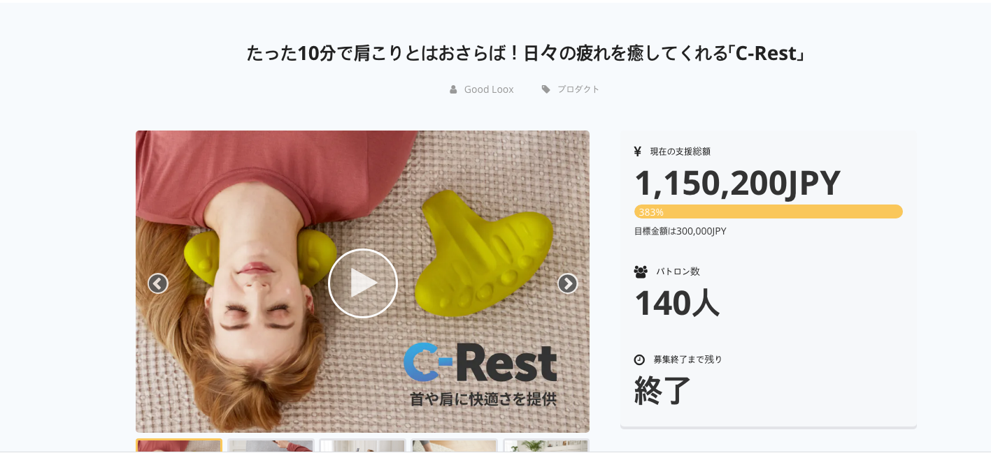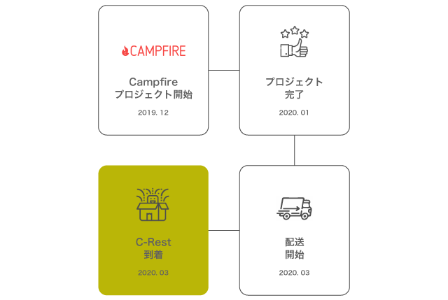 2020/01/31 15:13サポーターの皆さまCampfireにてのC-Restプロジェクトを終了いたします。今までの多くの声援と支援に感謝いたします。累計140名様にファンディング頂き、目標金額を多く上回る1150200円のファンディング金額になりました。C-RESTを多くの皆様に紹介できてこの上ない幸せであり、多くの関心と支援に再度感謝いたします。製造工場は休む暇なく回っておりますので3月の配送日までは間に合えると思います。予定された日付けに受け取って頂けるよう頑張ります。C-Restクラウドファンディングの成功に再三の感謝の挨拶を申し上げます。 もっと見る