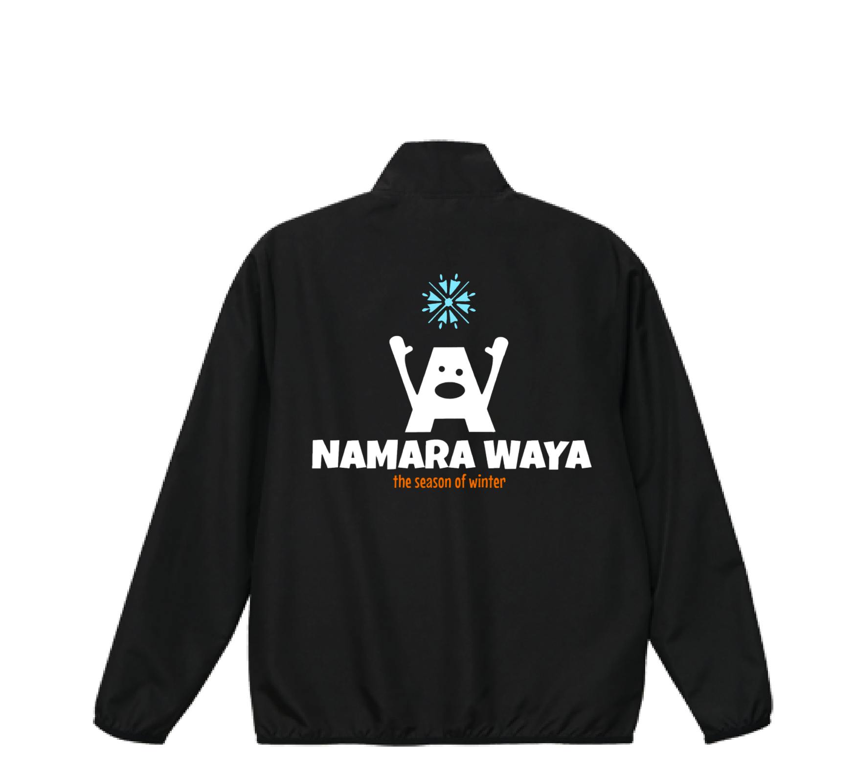 パーカーの表には、「WAYA」のロゴ入り、裏にはなまらわや!のキャラクターがプリントされています。