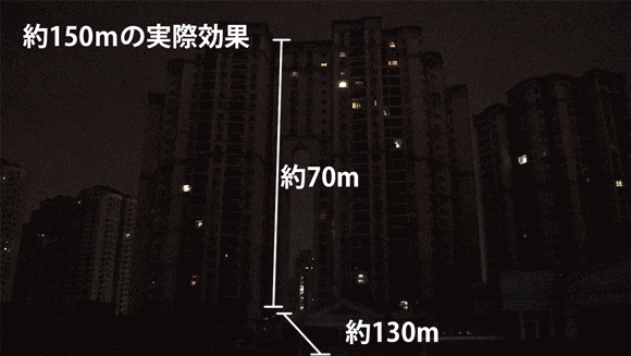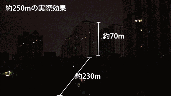 有効距離:最大250メートル(1500ルーメン)