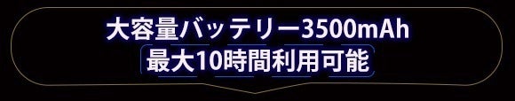 26650タイプの3500mAhリチウムイオンバッテリーを採用し、従来の18650(通常2000mAh)より単体容量が大幅に向上、長時間使用も可能です。