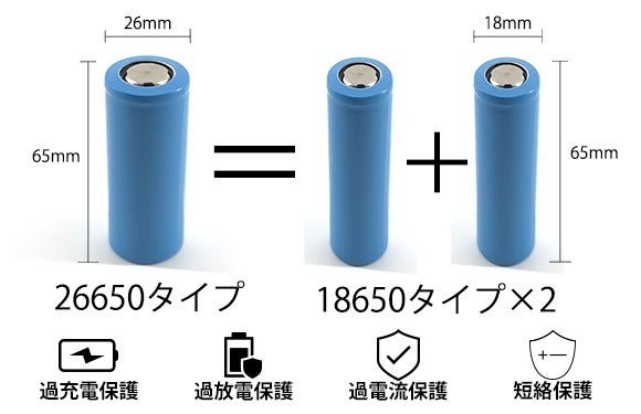 ・26650タイプの大容量バッテリー。