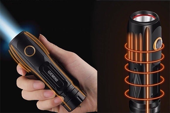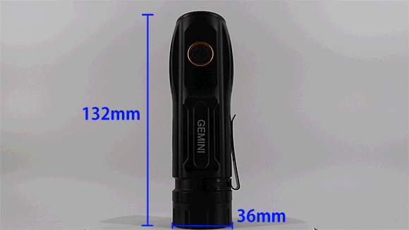 プロ級の懐中電灯に本体が500g、16cm以上を超えたものが普通で、長時間使用すれば、手首が疲れやすくなります。GEMINI LIGHTでは、僅か208g(バッテリーなし)の軽さと132mmの短さを両立。よって持ち運びやすく、アウトドア派だけではなく、日常生活にも最適です。