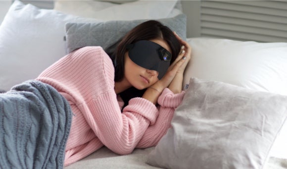 ワンボタンの簡単操作で、快適な眠りへ導くアイマスク。