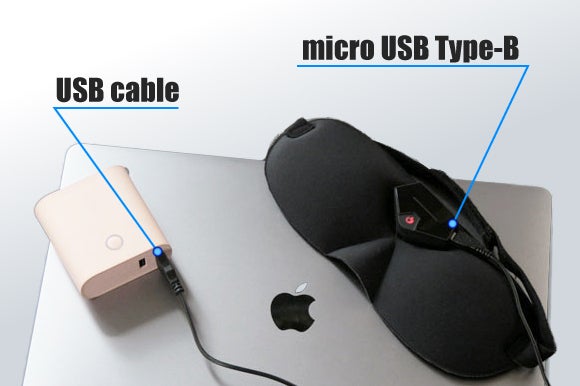 USBケーブルで充電でき、お手持ちのモバイルバッテリーやPCなどで