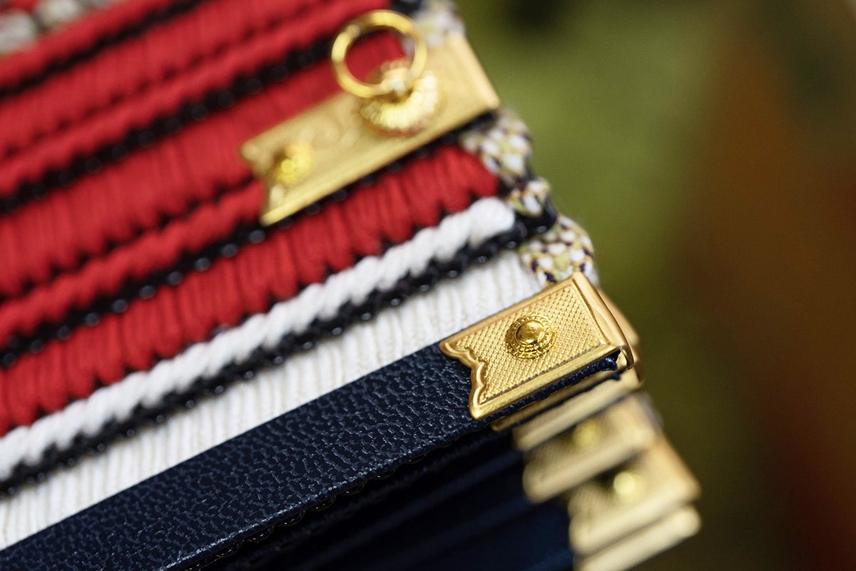 節句人形の職人と革職人の手によりひとつひとつ丁寧に作られた、甲冑製作の「縅(おどし)」という技術を用いた「名刺入れ」。