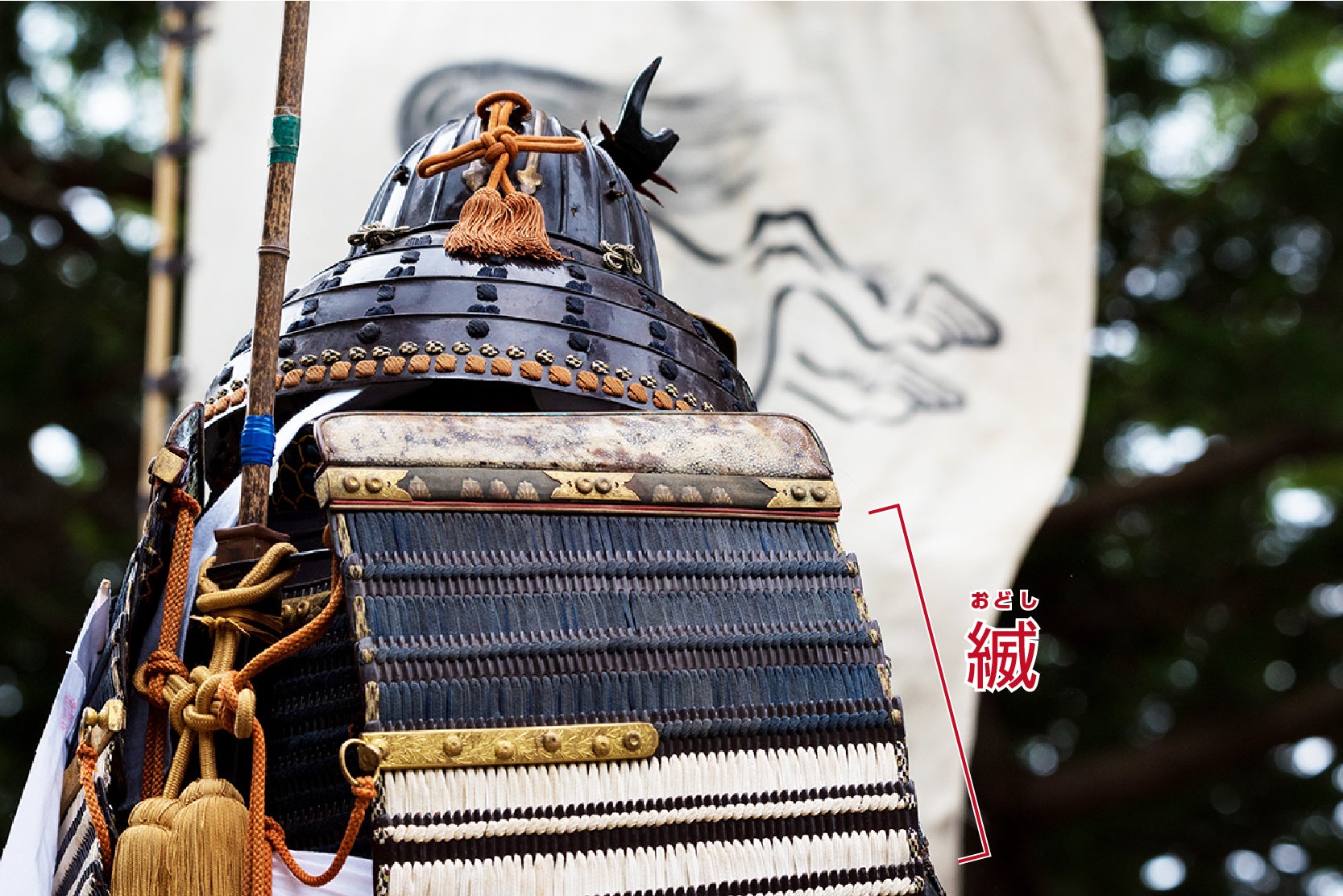 甲冑は、革や金属で作られた小さな「小札(こざね)」という板状のパーツを紐などでつなぐことで、人の体に合わせて作られています。