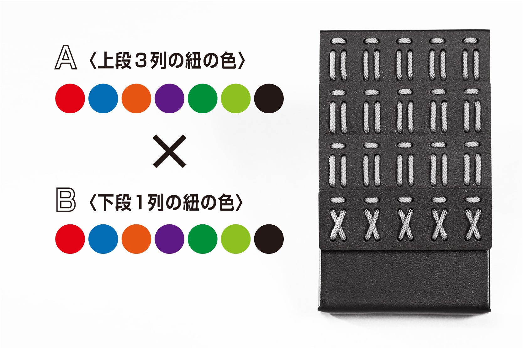 全て同色の7種類と、2色を組み合わせた定番の6種類。加えてお好みの色を2色選べるオリジナルの3パターンご用意しました。42パターンから自由に選択できるようにしました!