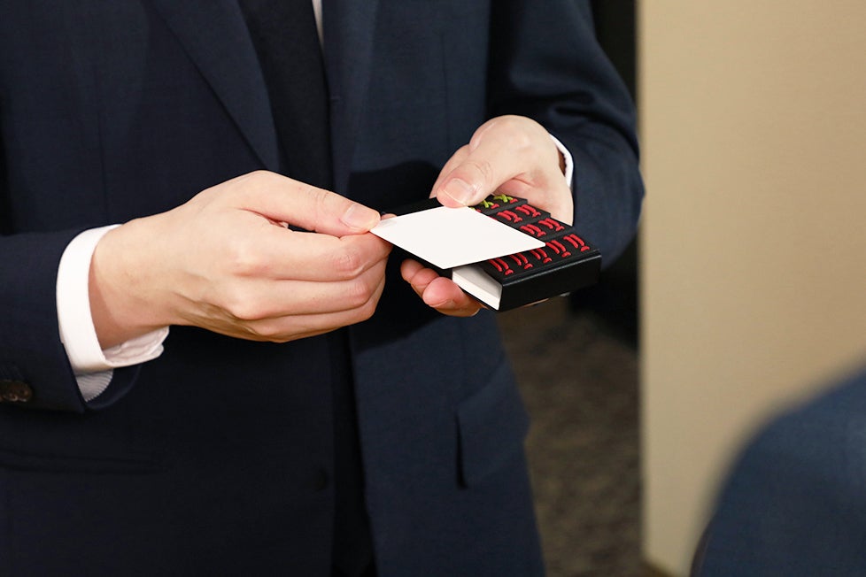 ④ケース内にはストッパーがあり、名刺が動かないように固定されます。