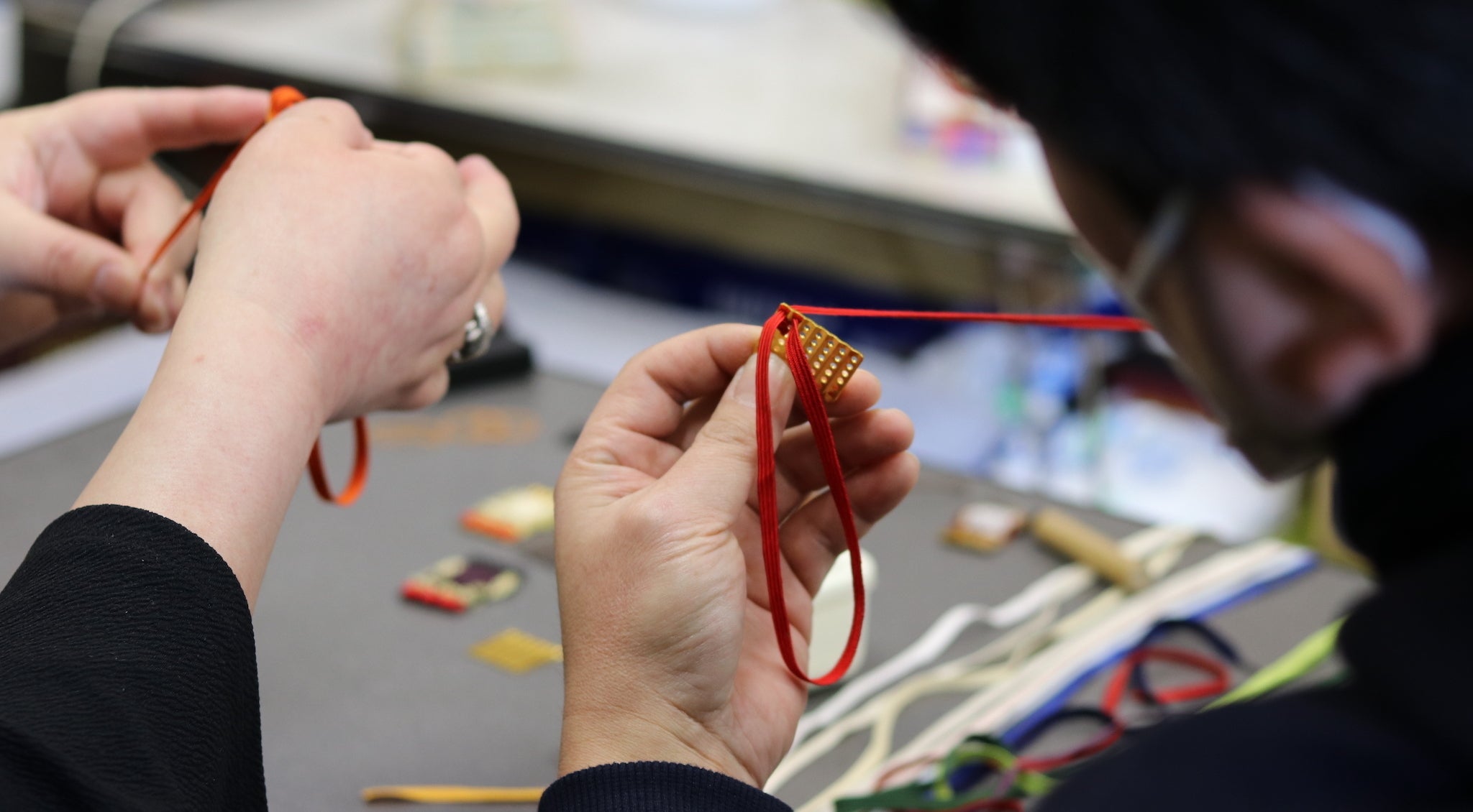 2021/02/25 21:14こんにちは。日本工芸株式会社松澤です。クラウドファンディング応援購入いただいて製造ラインに乗せいています、samurai holderですが商品としては4種類で展開することとなりました!シェアいただいたり、応援購入いただき誠にありがとうございました。改めて御礼申し上げます。百貨店での展開は商談中で、自社サイトでの販売はすでに開始しています!(以下の写真をクリックいただくと販売ページに進めます。)さて、実はこれ以外にカスタマイズができます!横一列は同色である必要がありますが、配色は選択可能です!以下は本日出荷いたしました、色の組み合わせです。浦和在住のレッズファンということでこの配色を選ばれました!気に入っていただければ本望です!組紐の色の種類は7色です。送る方を思い出しながら色をお選びください。今なら素材が揃っていますので2週間以内にお届け可能です!色の意味①『SHOJHOHI/猩猩緋』古代中国で生まれた空想上の生き物「猩猩」の色が由来(能にも用いられている)。その鮮やかで刺激的な色は、戦国大名にも好まれ、陣羽織などに多く用いられた。②『HANADA/縹』藍染めの色名として知られ、古くははなだ色、平安時代は縹色、江戸時代は花色と色名を変えて伝わった。 ③『KOHAKU/琥珀』琥珀の石のような黄色みを帯びた色、または透明感のある黄褐色のこと。琥珀は太古の樹脂類が土中で石化した鉱物で、古くは「くはく」、「あかだま」ともいわれ、貴石として扱われていた。④『EDOMURASAKI/江戸紫』古来紫は高貴な色、憧れの色とされてきた。江戸時代、庶民に親しまれた歌舞伎の中で「助六」が舞台で使用した鉢巻の色が流行。江戸の人に好まれた、江戸の美意識から生まれた色。⑤『TOKIWA/常盤』常緑樹の松や杉の葉からきている色。常緑樹を常磐木とも言い、常磐は常に変わらないこと(永久不変)という意味がある。江戸時代、長寿と繁栄など、縁起の良い吉祥の色として好まれた。⑥『MOEGI/萌黄』春先に草の萌え出る黄みの色という意味で「萌黄」と書く。『平家物語』では平敦盛の若武者ぶりを「萌葱匂いの鎧着て」と記している。平安時代から近世まで常用されていた代表的な緑系統の色名。⑦『SHIKKOKU/漆黒』黒漆を塗った漆器のような濡れたような深く美しい黒色をいう。純粋な黒。黒の中でも最も暗い色の意として使われることが多い。 もっと見る栴檀(せんだん)縅チャーム作りワークショップ(@朝比奈工房)実施報告