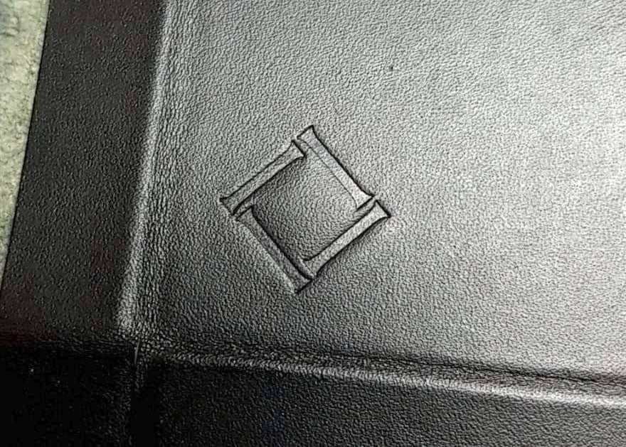 名刺入れ背面の裏側に「刻印」をしています。場所は以下の写真の通りで